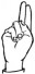 На ћирилици написано ДУЊА КОМАРНИЧКИ састоји се из 14 слова [?]. Исписано ћириличном једноручном азбуком за глувонеме: